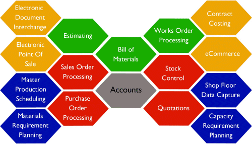 Sapphire V10 is an established ERP system with the primary modules as shown above. Each of the individual modules contains a broad range of functions, for example the Bill of Materials module includes Routings, Capacities & Resources, Tooling Register, Bulk Issue Stock listing, Costing and subsidiary functions such as the links for Staged Kitting.